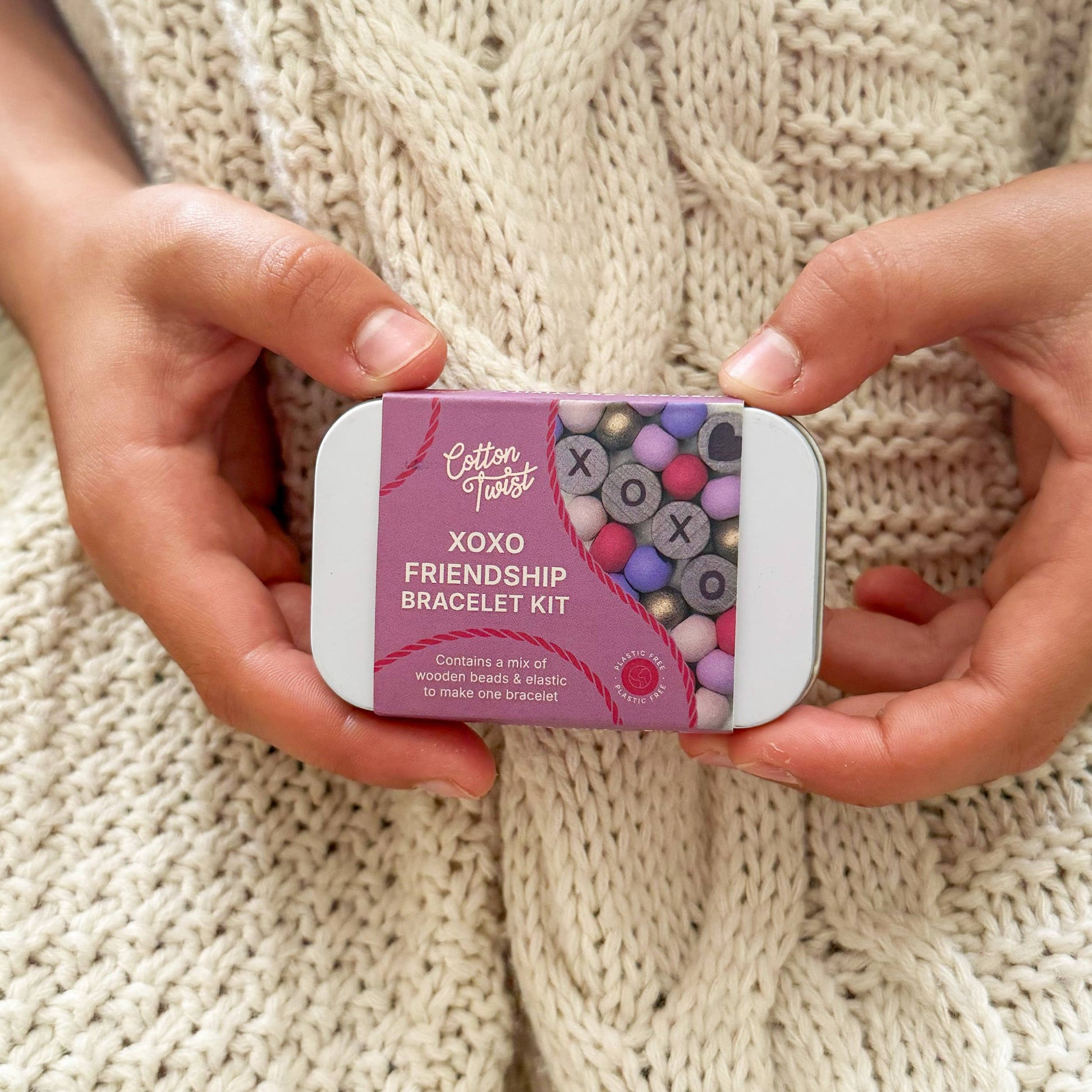 • Recommended for ages 3+ • Plastic free • Promotes fine motor skills • Perfect for till point add-ons • All materials provided • Ideal for party favours & stocking fillers • UKCA/UKNI/CE tested & FSC certified Say hello to our XOXO Friendship Bracelet Kit – the perfect way to create meaningful, personalised bracelets! Inside each tin, you'll find wooden beads in vibrant colours and easy-to-follow instructions to craft your very own friendship bracelet. Choose from 2 versions, each with its own unique colour scheme: 🌈 Rainbow colourway – XOXO 🩷 Pink colourway - XOXO Perfect for kids and adults alike, these kits are an ideal way to express friendship, kindness, and love. Whether gifting them to a friend, creating a bracelet for yourself, or making a gift for a loved one, each kit offers a creative experience that promotes fine motor skills and self-expression. MATERIALS: Hinged tin, wooden letter beads, wooden spherical beads, elastic with metal ends DIMENSIONS: 81 X 53 X 16mm
