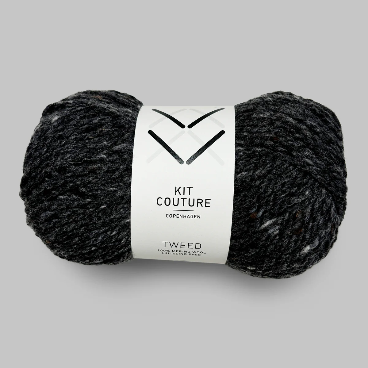 Vores Tweed er et totrådet garn, som har en basisfarve og fire farvede nister. Denne Tweed-kvalitet egner sig rigtig godt til ensfarvede projekter med én tråd. Efter vask bliver garnet endnu blødere, og maskerne lægger sig pænt.Tweed-garnet bliver produceret unikt til Kit Couture hos et erfarent og dygtigt spinderi i det nordlige Irland i den bedste kvalitet - produceret under de mest optimale vilkår for dyr, mennesker og miljø.