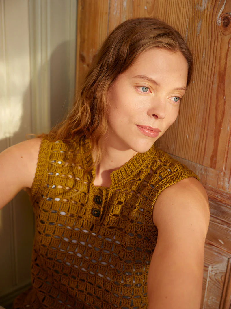 17 crochet patterns: 8 tops, 2 vests, 4 bags, 1 hat, 1 shawl, 1 pair of handwarmers