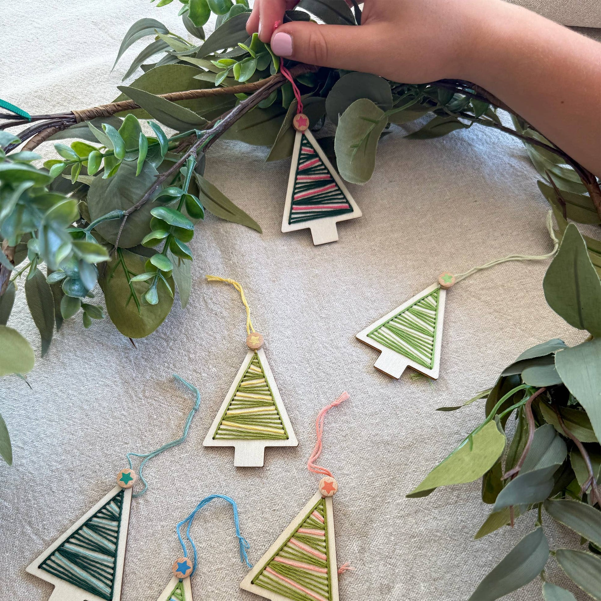 • Christmas décor/Holiday ornaments • Recommended for ages 4+ • Plastic free • Promotes fine motor skills • Perfect for till point add-ons • All materials provided • Ideal for party favours & stocking fillers • UKCA/UKNI/CE tested & FSC certified Nurture creativity this holiday season with our Stitched Christmas Tree Decoration Kit. This kit features 6 wooden Christmas tree decorations to make, perfect for adding a touch of handcrafted beauty to your Christmas tree or any festive display. Along with the wooden decorations, the kit includes a selection of cotton threads and wooden beads, allowing for each decoration to be personalised with a touch of festive charm. Our craft kit is made with sustainable materials and is 100% plastic free, ensuring that creativity doesn't cost the earth. MATERIALS: plywood decorations, watercolour pencils, wooden pencil sharpener, paintbrush, wooden beads. DIMENSIONS: Tin - 18 x 7.5 x 2cm