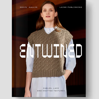 Entwined: Cables, Lace and Knitted Textures invites you to explore enchanting stitch patterns. This collection of 20 knitwear designs includes a range of garments and accessories — from elegant sweaters and cosy cardigans to beautiful hats and shawls. For this book, Meiju Kallio presents not only the intricate cables she is known for but also a variety of other textures, all crafted to suit a modern, versatile style. Meiju hopes that working on these designs brings you joy and a sense of accomplishment.
