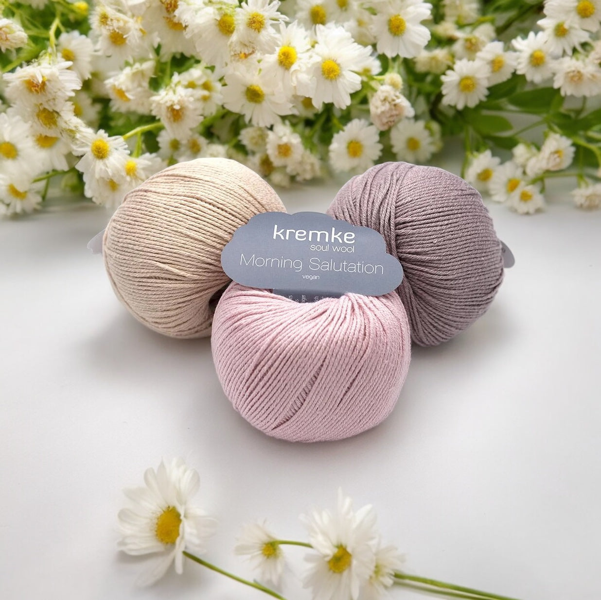 Morning Salutation combines fine Greek cotton with TENCEL TM, a Lyocell fiber, that is produced from sustainable wood, which originates from certified and controlled sources. Morning Salutation has cooling and moisture managing properties and is therefore anti bacterial and thus perfectly suitable also for babies. The silky shine, the even structure and the intense colors make every pattern stand out brightly. The yarn is kind of heavy, which makes it nicely draped.