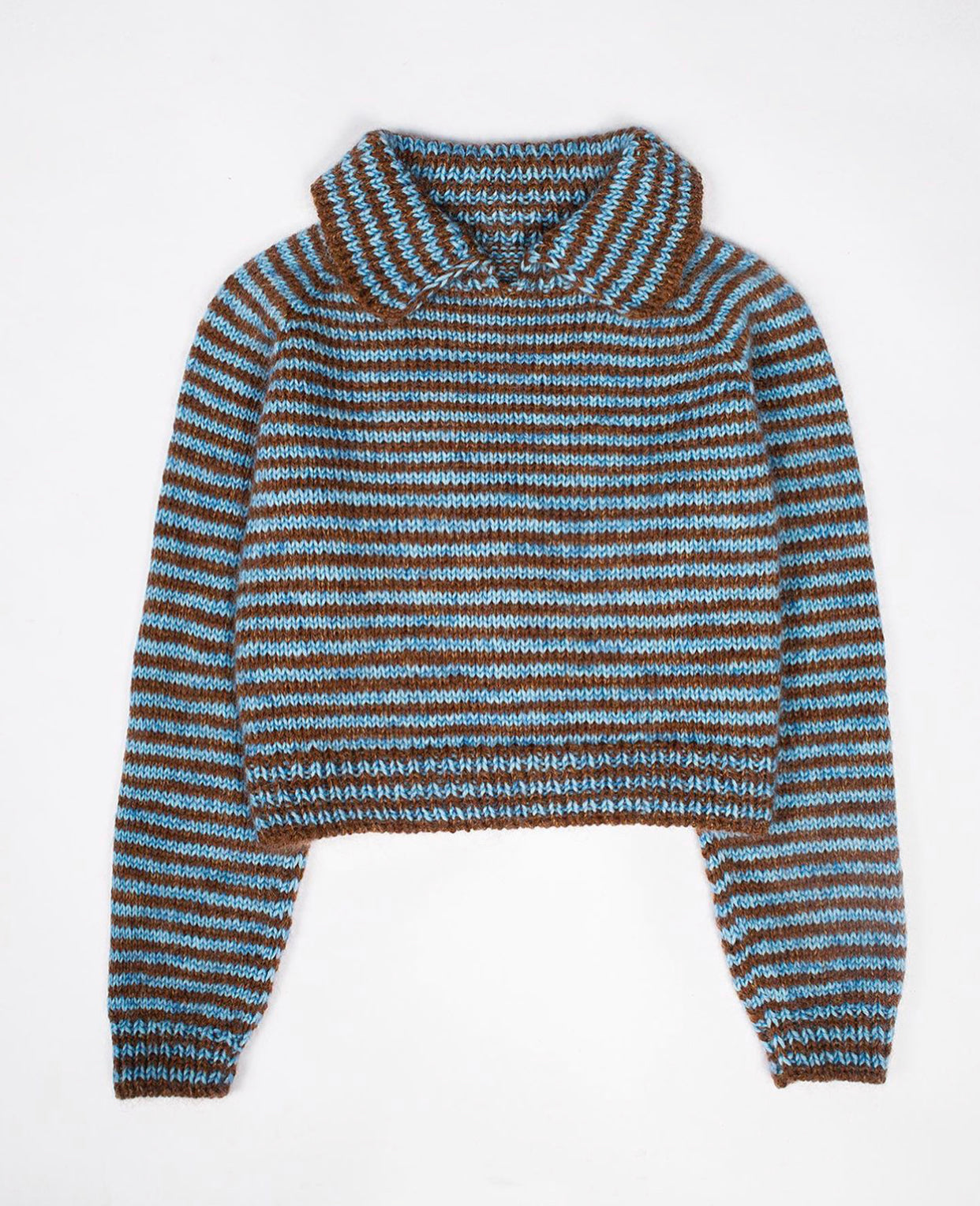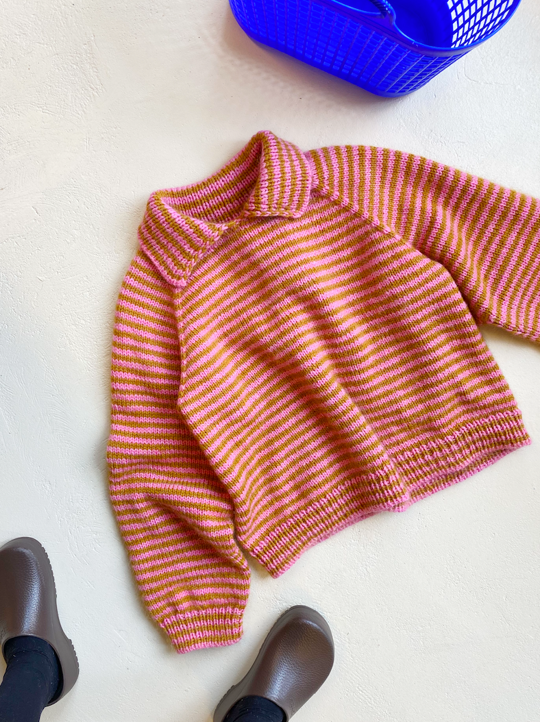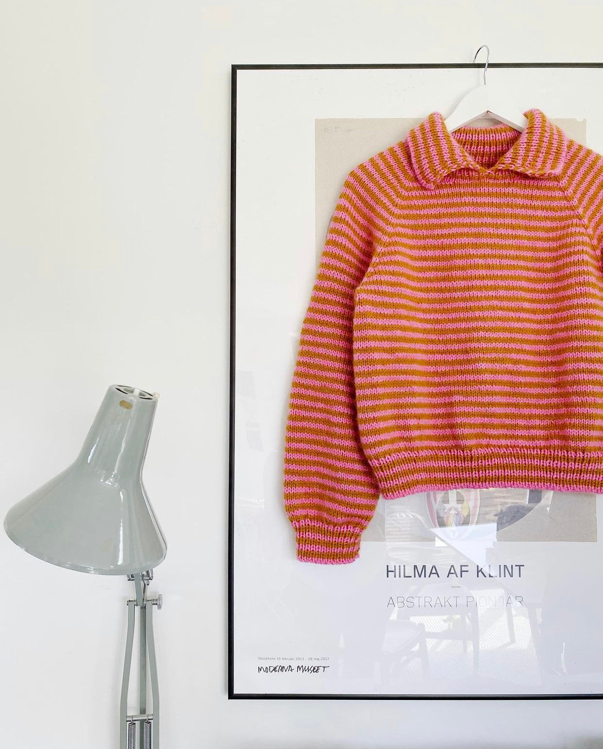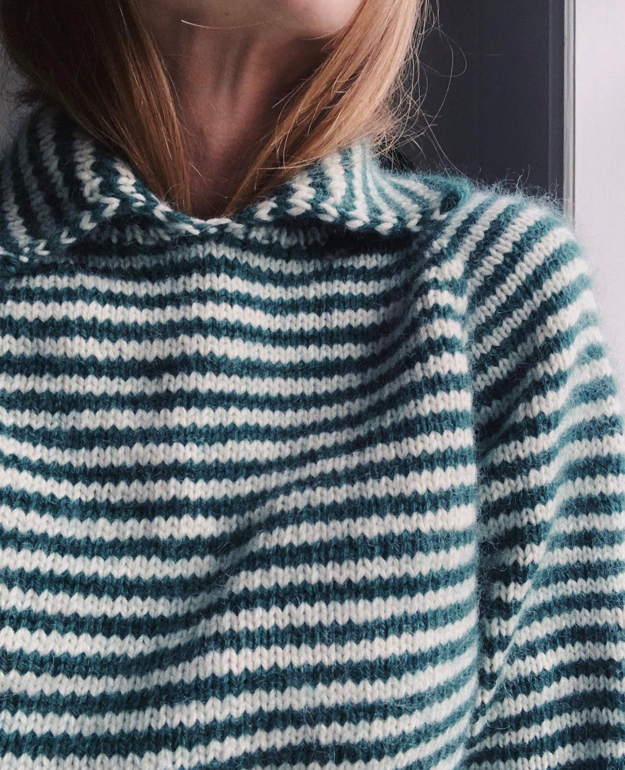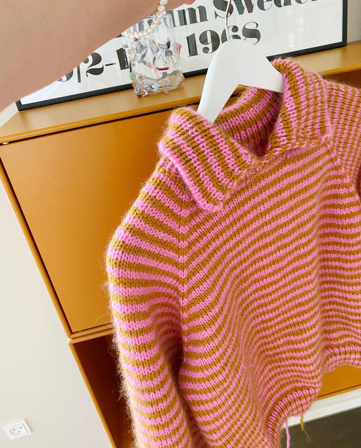 Polo sweater med ränder, som stickas uppifrån och ned i ett stycke