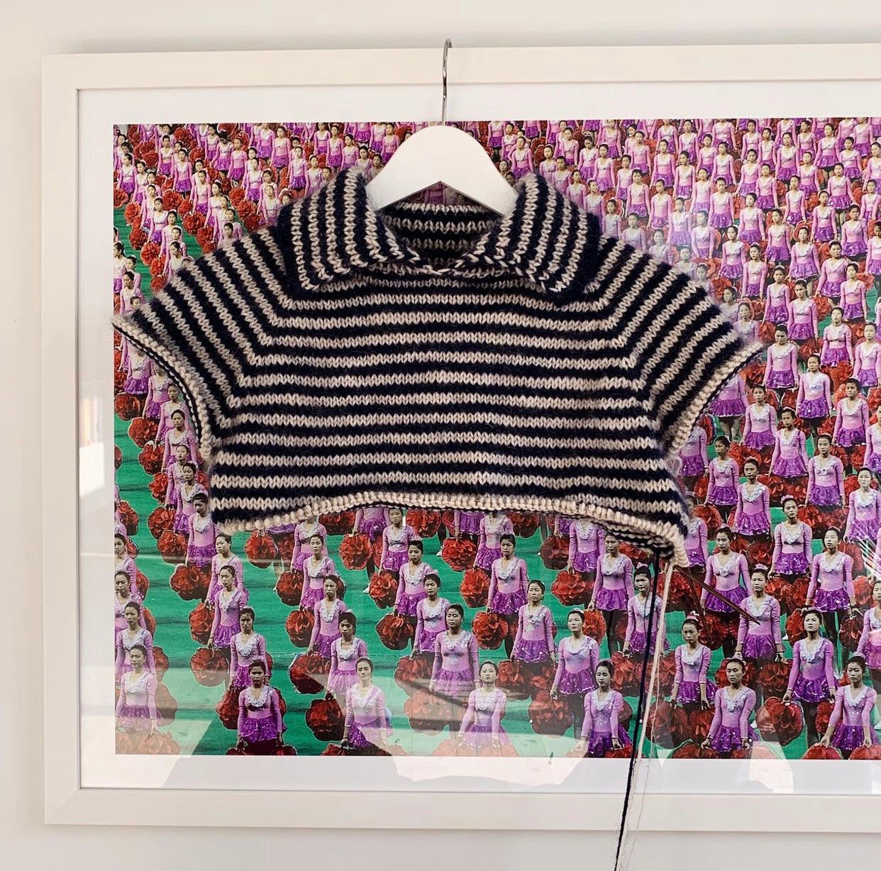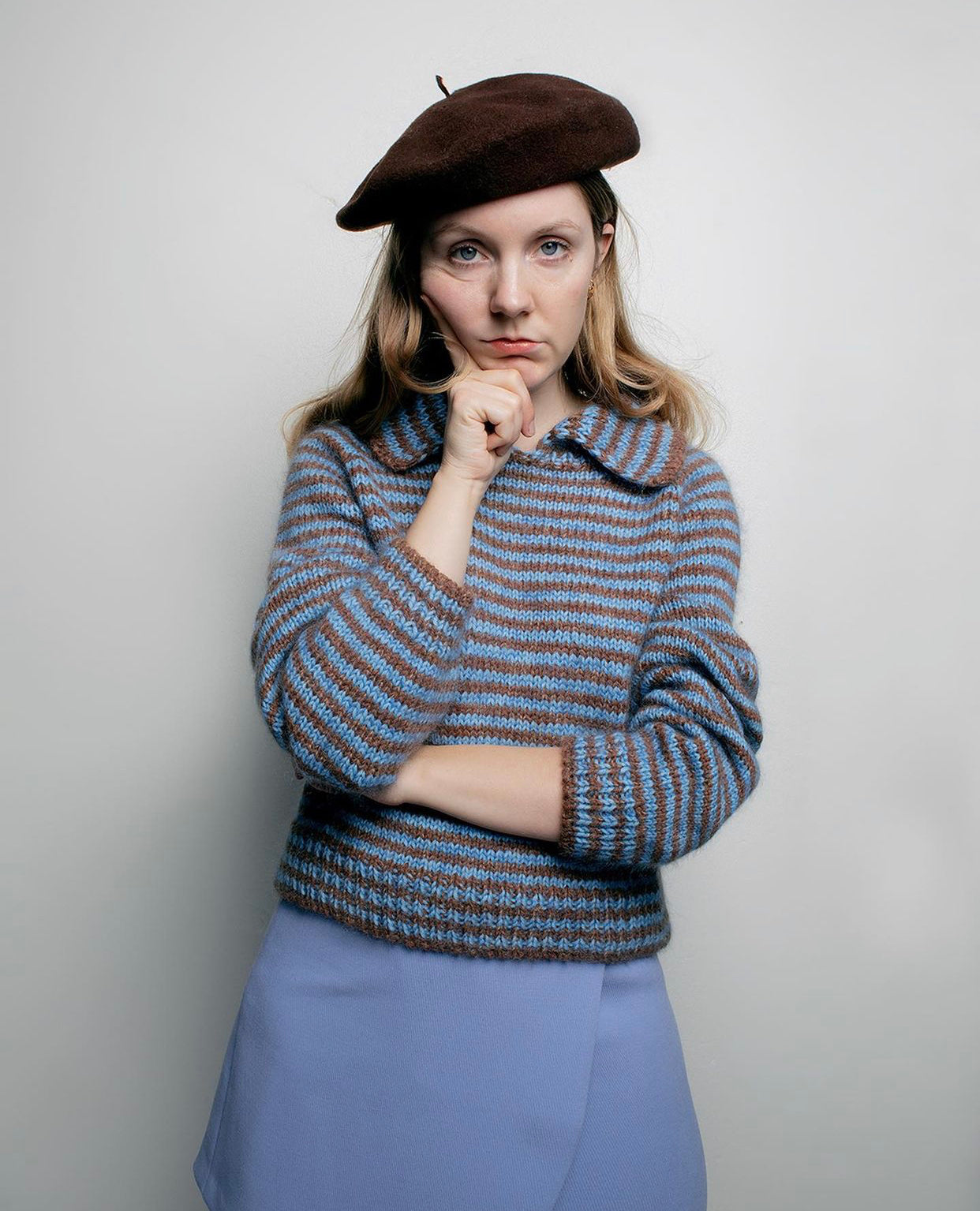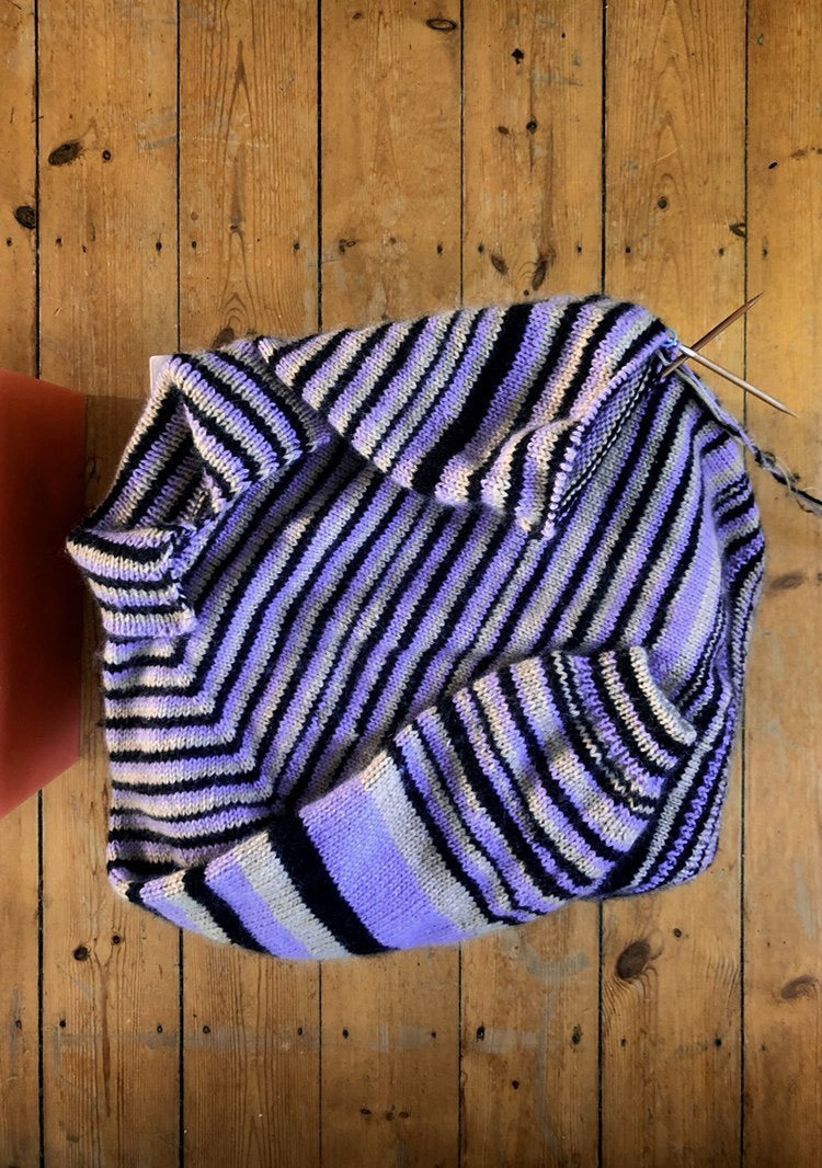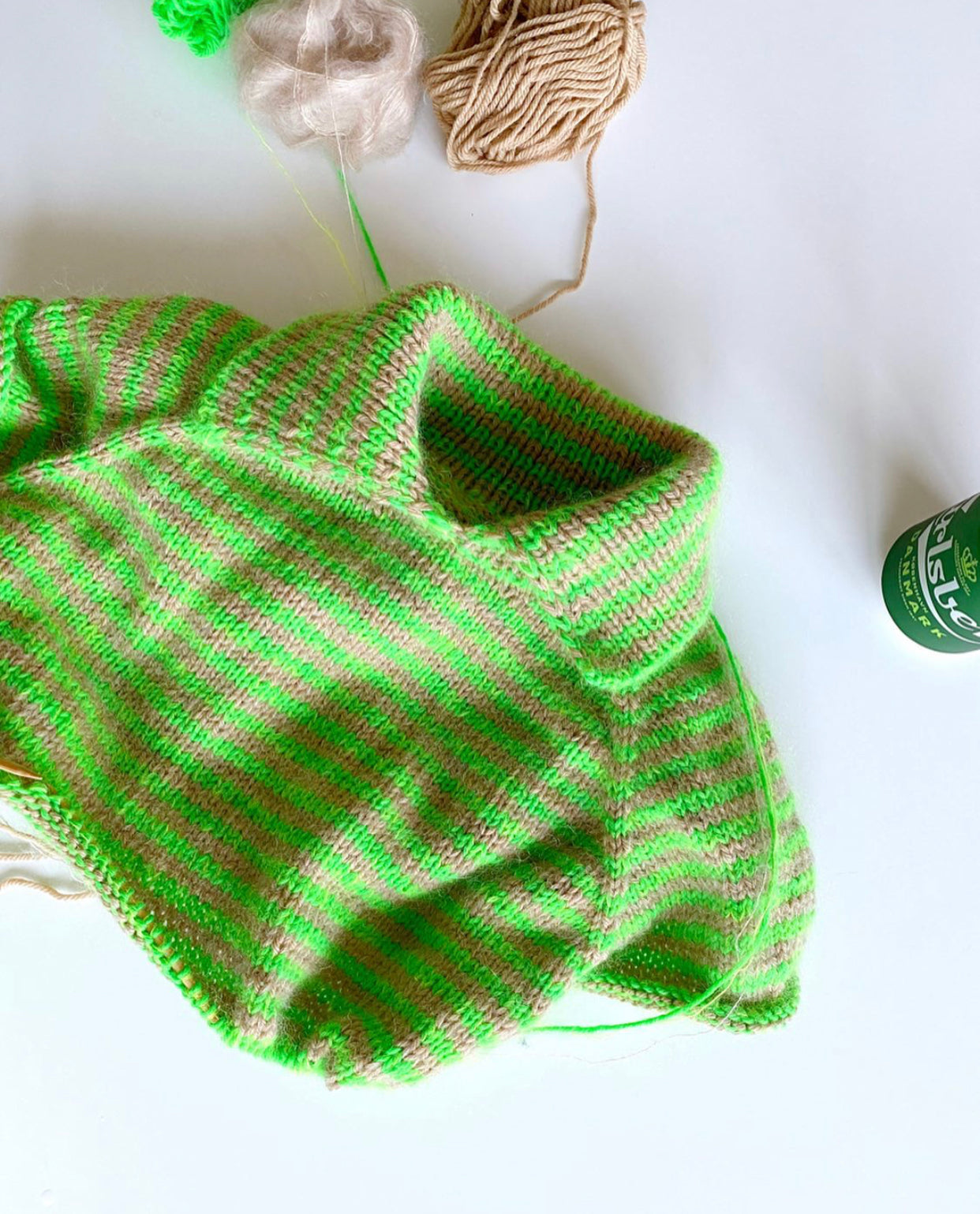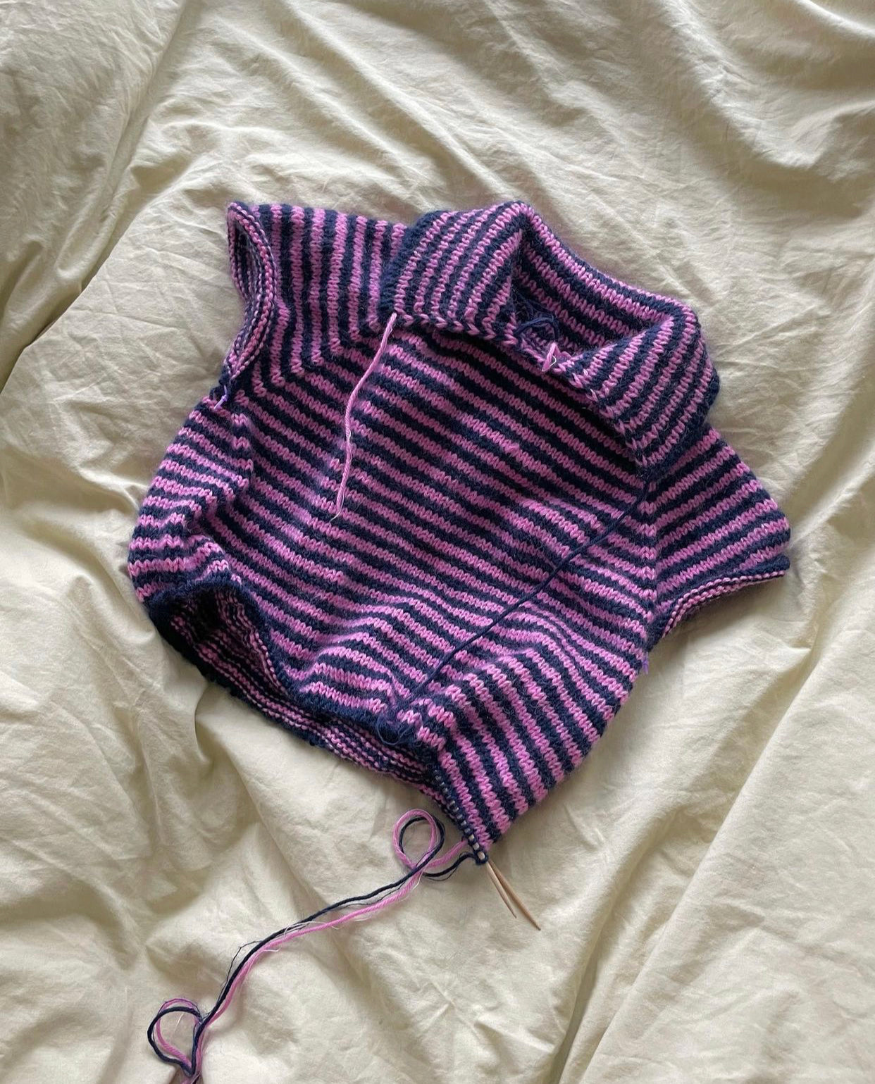 Polo sweater med ränder, som stickas uppifrån och ned i ett stycke