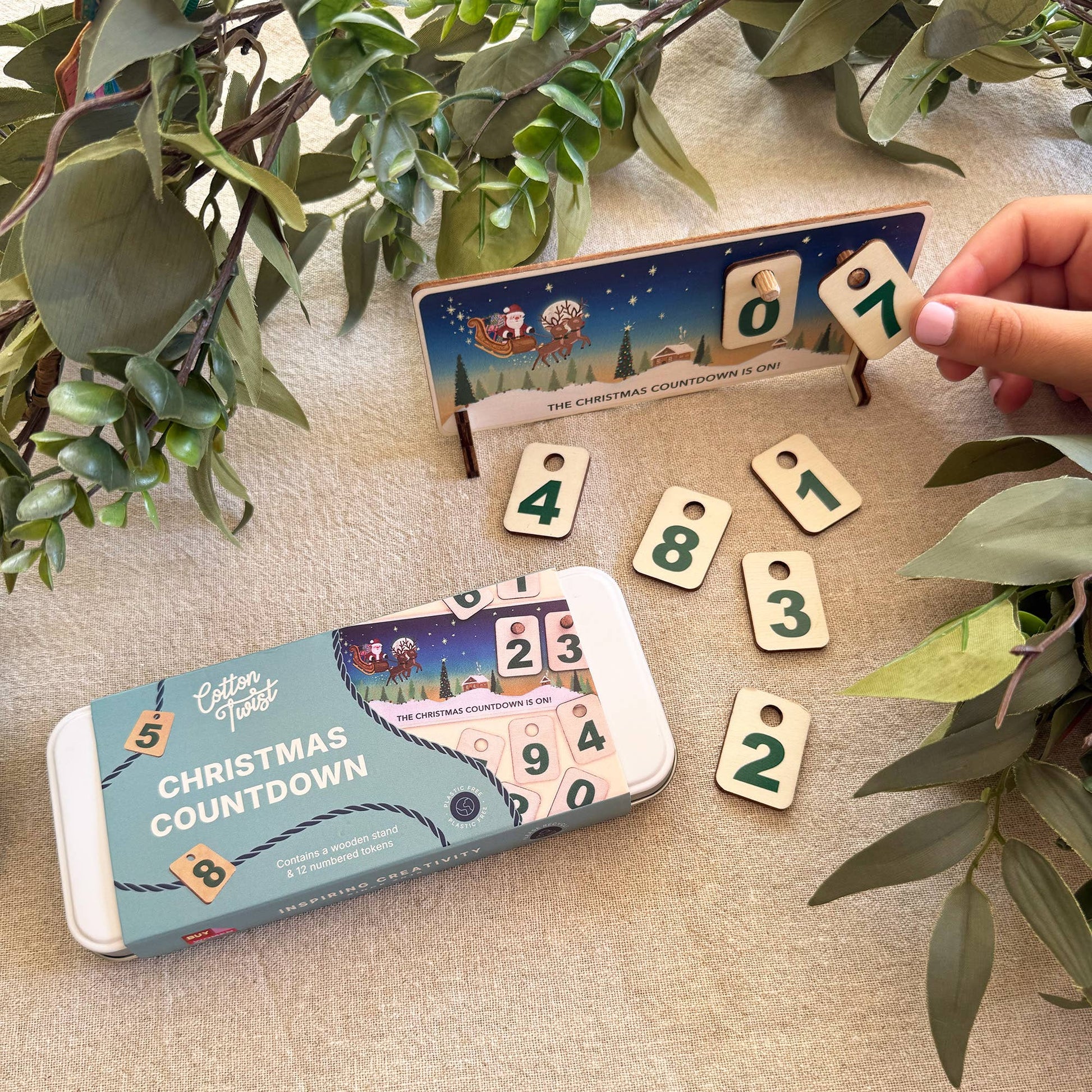 • Christmas décor/Holiday ornaments • Recommended for ages 4+ • Plastic free • Promotes fine motor skills • Perfect for till point add-ons • All materials provided • Ideal for party favours & stocking fillers • UKCA/UKNI/CE tested & FSC certified Make the countdown to Christmas even more exciting with our Christmas Countdown Chart! This beautiful tin includes a wooden stand, featuring a festive scene that brings the magic of Christmas to life. The set also includes numbered wooden tokens to mark each day leading up to the big day, creating a fun and interactive way for children and adults alike to celebrate the season. A perfect family tradition, this advent chart will become a cherished part of your holiday celebrations year after year. Our countdown kit is made with sustainable materials and is 100% plastic free, ensuring that your child MATERIALS: wooden stand, wooden number tokens, metal tin. DIMENSIONS: Tin - 18 x 7.5 x 2cm