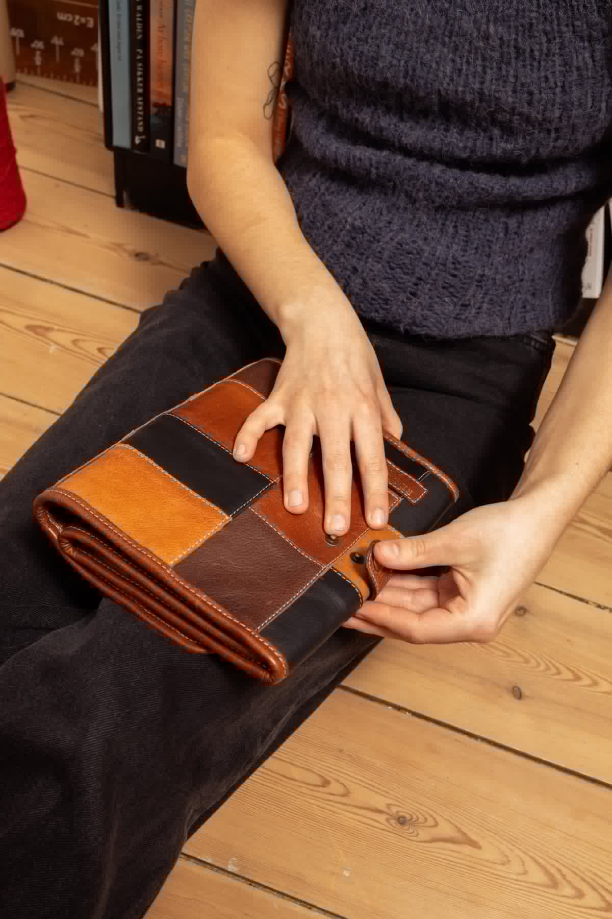Torn & Cuts minimises the waste by reusing the assorted pieces of torn and cut skins, giving new life to the leather.